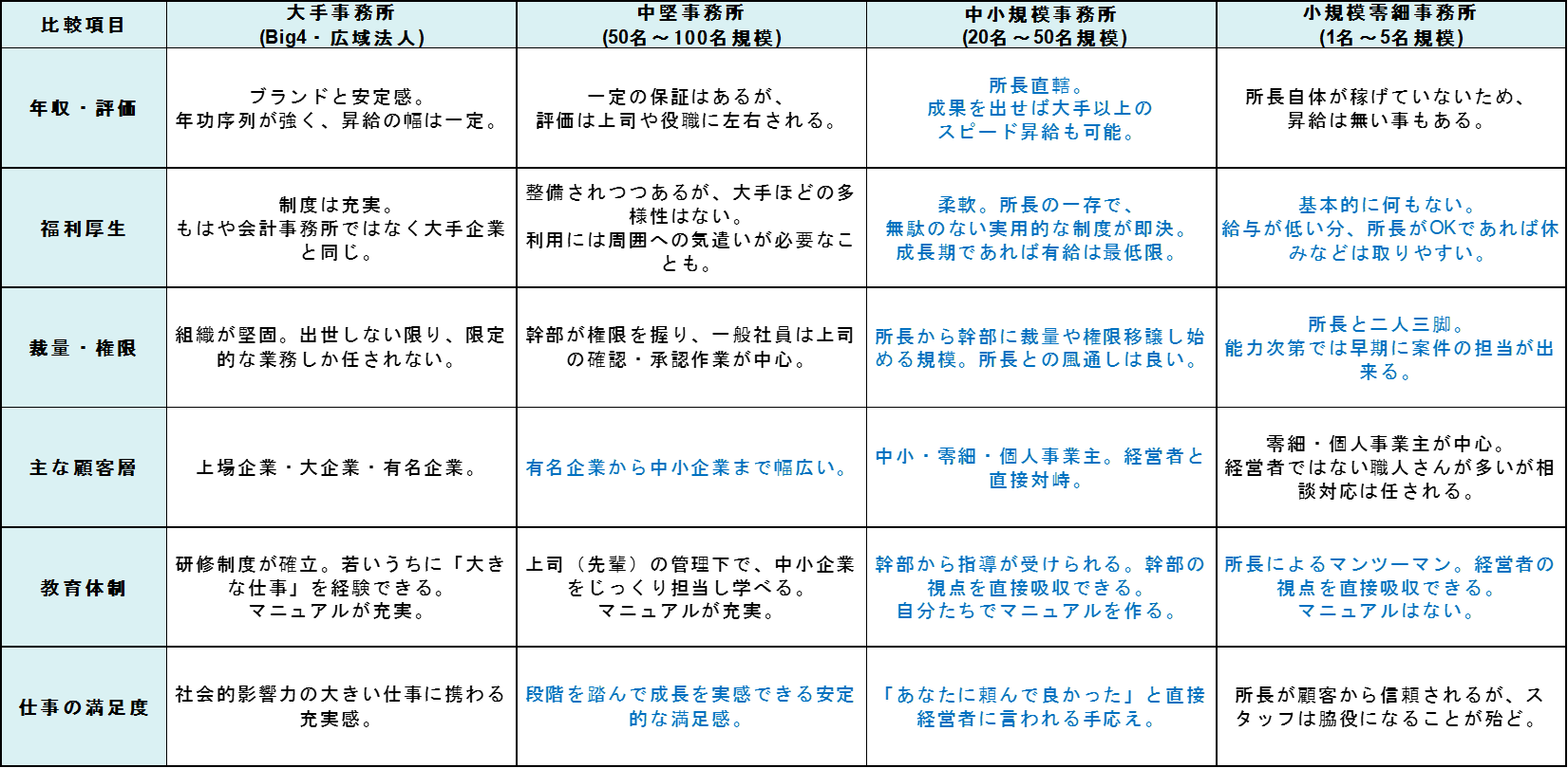 ちなみに弊社は、15名規模の中小と小規模の間位の事務所規模ですが、中小規模事務所並の待遇や客層、仕事満足度を有していると思っており、